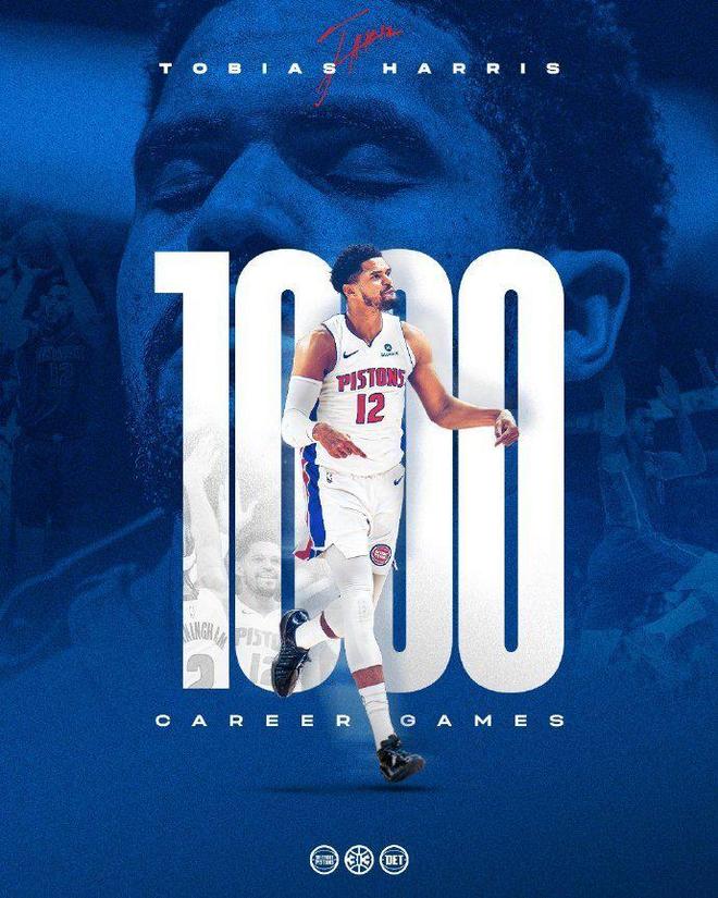 活塞主力哈里斯達成生涯1000場常規(guī)賽里程碑,以及達成生涯常規(guī)賽16000分里程碑。