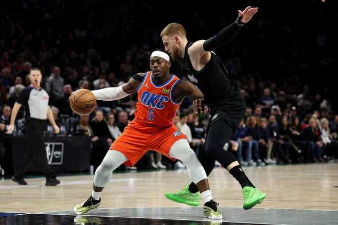 北京時間1月30日,NBA常規(guī)賽衛(wèi)冕冠軍雷霆客場對陣森林狼,其中森林狼是背靠背第二場,哈爾滕施泰因時隔16場復出替補登場。雷霆全場落后森林狼,且被森林狼團隊攻勢壓制逐步落后20+差距,最終雷霆111-123輸給森林狼。雷霆已經(jīng)輸?shù)?1場比賽,無法追平96喬丹公牛的72勝紀錄,森林狼收獲3連勝,森林狼反超湖人升西部第五。