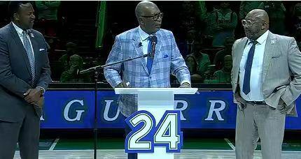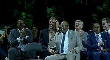 中場休息時(shí)間,獨(dú)行俠退役隊(duì)史名宿阿吉雷的24號球衣,諾維斯基與馬里昂等名宿出席。前3分鐘獨(dú)行俠67-70落后,黃蜂一波8-0攻勢擴(kuò)大11分優(yōu)勢,雙方之后持續(xù)展開對攻。獨(dú)行俠逐步追到87-91落后,格林上籃,獨(dú)行俠一波6-0攻勢追分。弗拉格單節(jié)得到15分,引領(lǐng)獨(dú)行俠單節(jié)35-34凈勝1分,前三節(jié)結(jié)束雙方維持93-93。前三節(jié)比賽雙方均是4人得分上雙,黃蜂三分30中16,克尼佩爾8記三分28分與三球17分8助攻;獨(dú)行俠三分25中8,弗拉格23中16得到40+7。