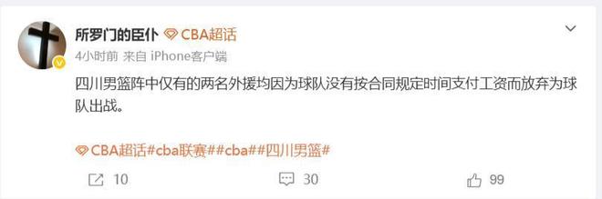 四川隊(duì)客場(chǎng)不敵南京同曦隊(duì),遭遇了本賽季的21連敗,他們也是本賽季至今唯一沒(méi)有勝場(chǎng)的球隊(duì)。昨天晚上的比賽四川隊(duì)全華班出戰(zhàn),根據(jù)媒體人“所羅門的臣仆”的消息,四川隊(duì)因?yàn)榍沸?,兩名外援拒絕為球隊(duì)出戰(zhàn),如果這樣的話本賽季四川隊(duì)可能遭遇42場(chǎng)全敗的局面,更嚴(yán)重的是可能會(huì)被強(qiáng)制退賽。