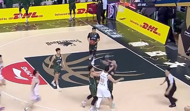 左朕年拿球后在無人盯防的情況下瞄著籃筐又投了一記三分球,這讓南京同曦球員馬鑫鑫與趙柏清很不滿意,二人與左朕年發(fā)生了肢體沖突,馬鑫鑫還被左朕年推翻在地,不過說實話,馬鑫鑫多少有一些表演的成分。