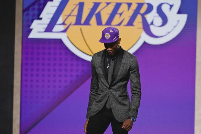 很多人不知道,亨特當年正是被湖人選中的。2019年選秀大會,湖人手握4號簽。這個選秀權(quán)先是在濃眉的交易中被湖人送到鵜鶘,緊接著又被鵜鶘送給了老鷹。當亨特站在臺上時,他戴的帽子是湖人專屬,背景板同樣是湖人Logo。