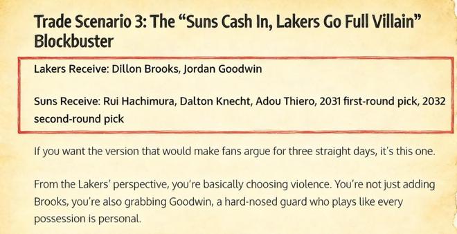 美媒《Fadeaway World》更是直接給湖人提出了一套交易方案,建議他們將克內(nèi)克特、蒂耶羅、八村壘、2031年的首輪簽以及2032年的次輪簽送到菲尼克斯,換回狄龍和古德溫