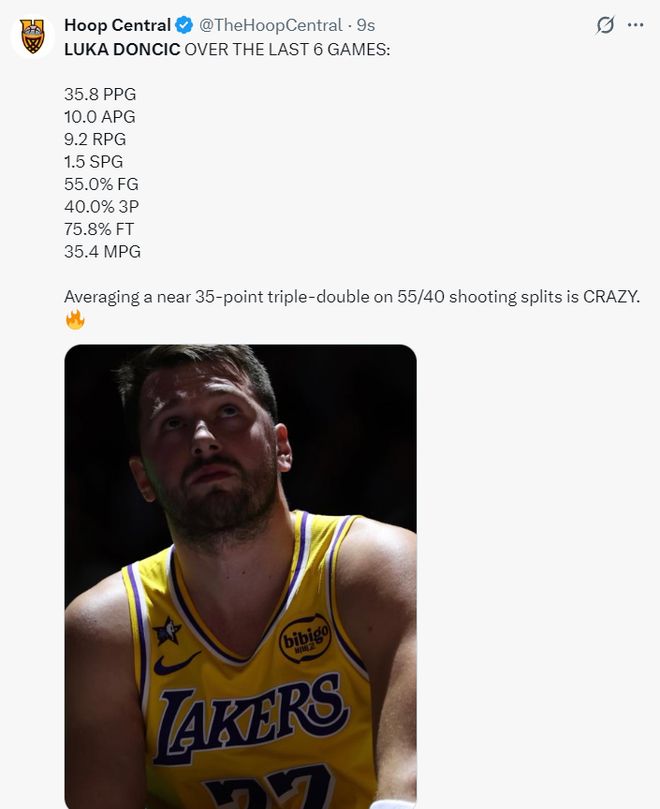 東契奇蓋世一夜登全美熱搜!湖媒贊世間罕見 近六戰(zhàn)場(chǎng)均36+10+9