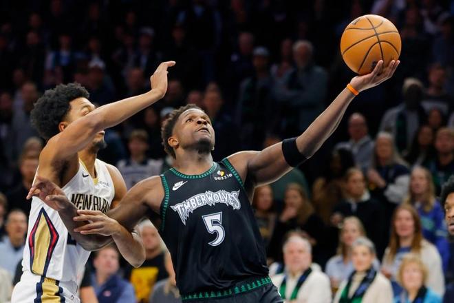 次節(jié)比賽,森林狼連續(xù)兩節(jié)單節(jié)得分30+,且第二節(jié)升級(jí)到本場(chǎng)首次單節(jié)得分35+,并限制鵜鶘首次單節(jié)不足25分。森林狼開啟強(qiáng)勢(shì)反撲模式,愛德華茲第二節(jié)再得11分爆發(fā),引領(lǐng)森林狼單節(jié)38-22凈勝16分,上半場(chǎng)結(jié)束森林狼70-56領(lǐng)先鵜鶘。前兩節(jié)比賽,鵜鶘三分14中5,貝13+4+3與錫安8中6得到14+4;森林狼三分20中9,愛德華茲9中7命中4記三分得到23分4助攻與蘭德爾14+3+3。
