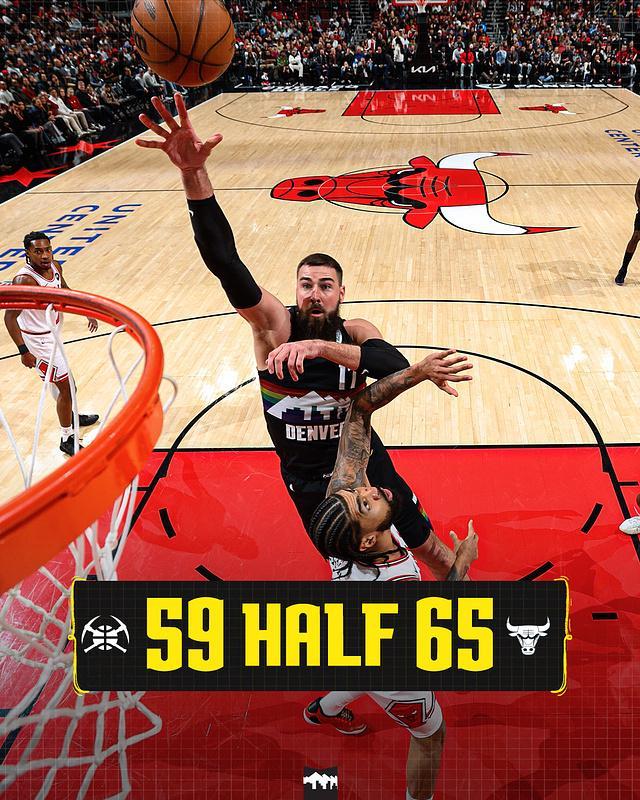 次節(jié)比賽,雙方第二節(jié)進攻火力下滑均是不足30分,尤其是掘金比首節(jié)少得到19分。掘金在次節(jié)開局44-46被反超,掘金連得5分奪回領先,公?;鼐匆徊?-0攻勢,雙方之后纏斗至58-58。公牛一波7-1攻勢拉開比分,掘金單節(jié)20-29輸掉9分,上半場結束掘金59-65被公牛反超。前兩節(jié)比賽,掘金三分命中數8-11落后,約基奇6中3得到9+11+7、小哈達威18分與斯特勞瑟11分,西蒙斯13分與布澤利斯10+7。