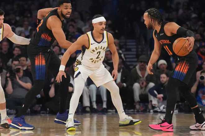 尼克斯上一場客場111-89大勝凱爾特人,步行者過去4場連輸火箭、爵士、雄鹿與猛龍遭遇4連敗,本賽季首次交鋒尼克斯客場114-113險勝步行者。本場尼克斯缺少阿奴諾比、麥克布萊德與羅賓遜,步行者缺少祖巴茨、哈利伯頓、托平等。首節(jié)開局尼克斯9-3領(lǐng)先,并在之后維持12-5領(lǐng)先,步行者一波8-0攻勢反超,尼克斯纏斗至14-16落后。尼克斯內(nèi)外開花一波8-0攻勢反超,西亞卡姆與內(nèi)姆哈德連續(xù)得分,尼克斯26-27被反超。雙方繼續(xù)交替領(lǐng)先纏斗,首節(jié)結(jié)束尼克斯33-32領(lǐng)先步行者。首節(jié)步行者三分17中7,西亞卡姆7中4得到10分;尼克斯三分9中3,布倫森8中4得到11分。
