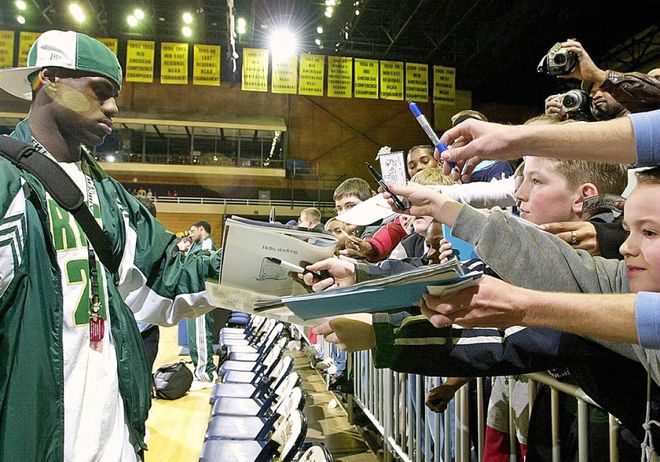 “我一直都有使命。當我意識到自己能打出高水平比賽時——比如高二去芝加哥和喬丹他們一起打球的時候。后來高三去克利夫蘭和騎士隊對抗,我當時就想:‘哦……我屬于這里。我真的屬于這里?!抑牢疫€得學習,還得把身體養(yǎng)好,繼續(xù)理解比賽和細節(jié)?!?/p>
