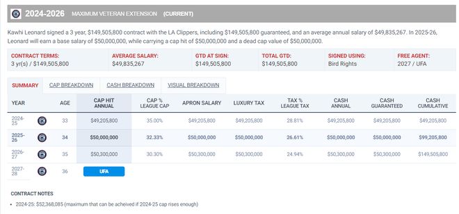34歲的倫納德在明夏合同到期,他現(xiàn)在進入生涯最巔峰的一個賽季對明夏合同有著巨大的影響。