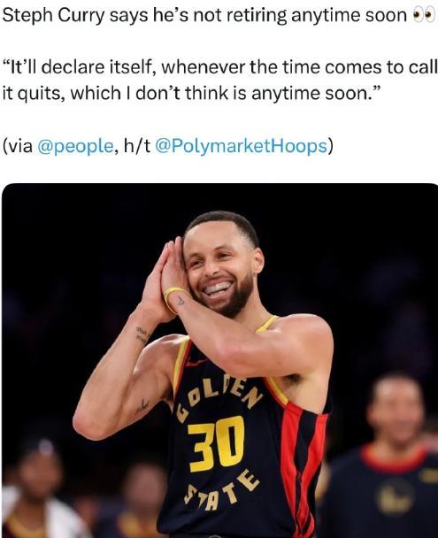 庫(kù)里說:總是想著未來會(huì)讓人錯(cuò)失當(dāng)下,等待真正應(yīng)該停下的時(shí)候,一切自然就會(huì)停下,但我不認(rèn)為(退役)會(huì)在近期發(fā)生。
