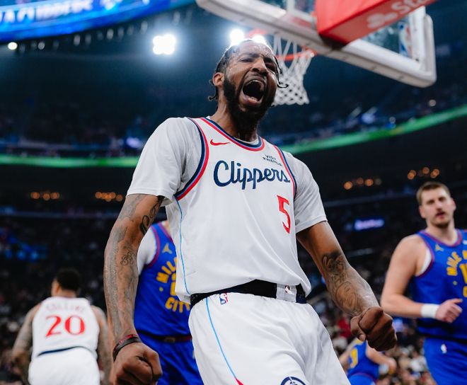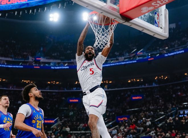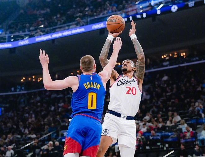 后半段約基奇帶著布萊恩強攻籃下,馬瑟琳造殺傷,聯(lián)合科林斯的三分雨不斷縮小分差。節(jié)末馬瑟琳跳投+接球上籃,第一節(jié)打完,快船25-24反超掘金。進入第二節(jié),倫納德的2+1直接被裁判吹成提前犯規(guī),但此后倫納德強攻,掘金連續(xù)失誤,好在小哈達威上籃止血。馬瑟琳繼續(xù)反擊暴扣+頂著約翰遜轟三分,布魯斯布朗手感火熱打??齑V卸蝹惣{德軍訓(xùn)斯潘塞瓊斯,穆雷回應(yīng)三分,鄧恩和倫納德咬住比分,布魯斯布朗彈無虛發(fā)。后半段布萊恩吃餅,斯特勞瑟也續(xù)上三分球,科林斯艱難跳投,約翰遜再度回應(yīng)三分。