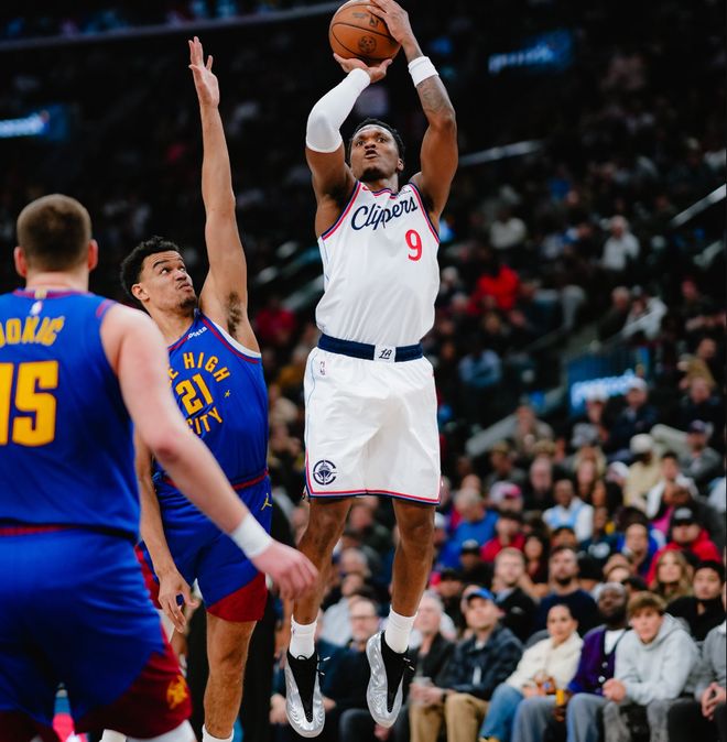 科懷-倫納德在全明星周末對陣世界隊一戰(zhàn),12分鐘里13中11,三分7中6,拿到31分,他就在約基奇的眼前打出炸裂表現(xiàn)。關(guān)鍵是倫納德的競技狀態(tài)一直都很炸裂,本賽季的他打出生涯最高光的賽季。