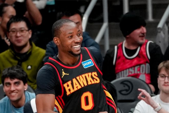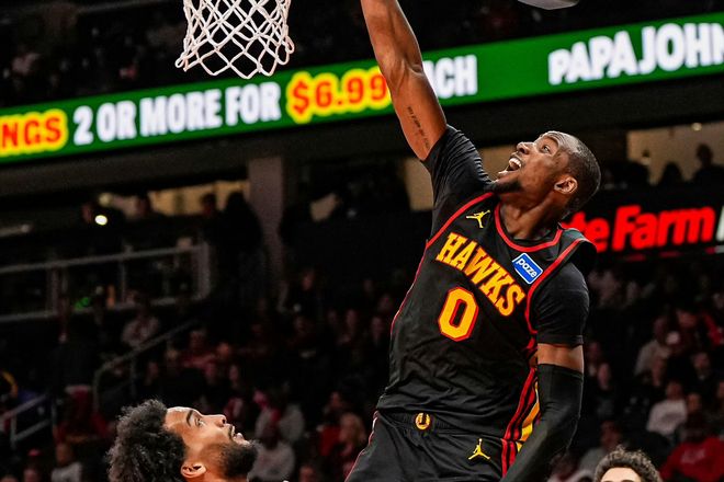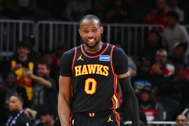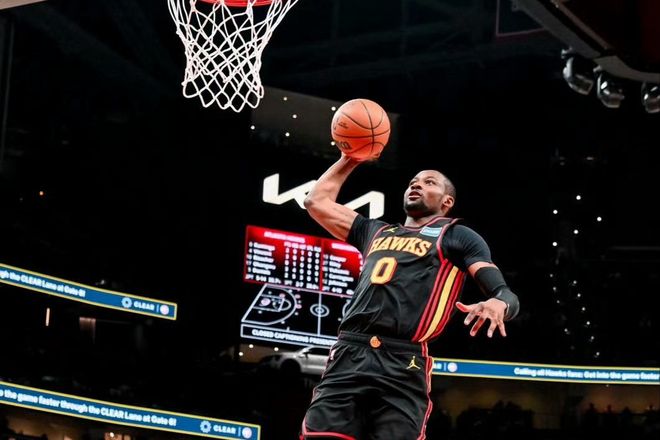 庫明加迎來了自己在老鷹隊(duì)的第一場比賽,在被勇士隊(duì)交易到亞特蘭大之后,庫明加就因?yàn)樽笙ス谴靷恢比毕?,直到今天才?fù)出。