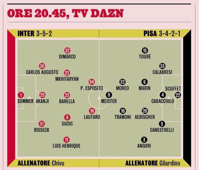 根據(jù)米體的賽前預(yù)測,本場國米將繼續(xù)進(jìn)行一定的陣容輪換。上一場歐冠對阿森納,勞塔羅和巴雷拉提前被換下場,其實(shí)就是為了這一場做準(zhǔn)備。勞塔羅和皮奧聯(lián)袂搭檔鋒線,“皮勞組合”經(jīng)過多場比賽驗(yàn)證效果不錯,特別是皮奧在前場的支點(diǎn)作用為勞塔羅創(chuàng)造了很多進(jìn)攻機(jī)會。中場巴雷拉出任后腰,連續(xù)出戰(zhàn)的澤林斯基終于迎來輪休,恰爾汗奧盧還沒回歸,他可得省著點(diǎn)用,姆希塔良重回首發(fā),上一場對陣阿森納表現(xiàn)不錯的蘇契奇則再次出戰(zhàn)。兩邊翼衛(wèi)迪馬爾科和恩里克基本沒有疑問,阿坎吉、比塞克和奧古斯托搭檔后防線,巴斯托尼輪休。