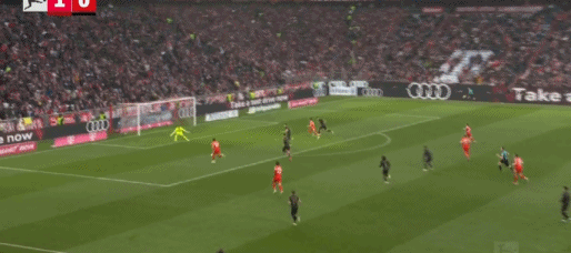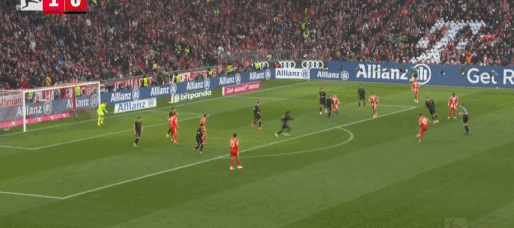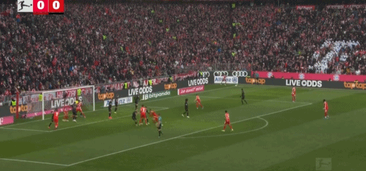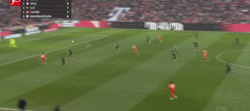 第29分鐘,拜仁前場4打3,迪亞斯把球停大了,隨后被達門化解