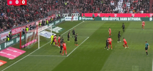 第23分鐘,奧利塞開出角球,伊藤洋輝頭球破門,拜仁1-0奧格斯堡