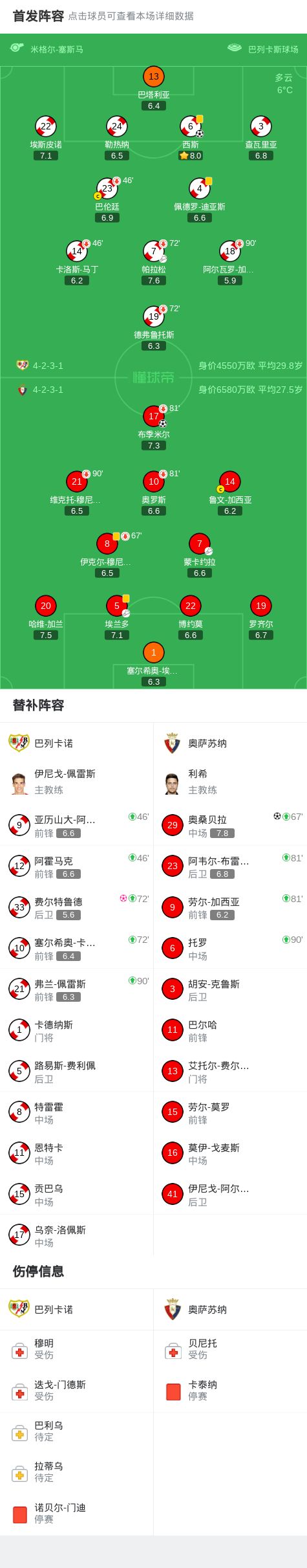 北京時間1月24日,西班牙足球甲級聯(lián)賽第21輪,巴列卡諾主場對陣奧薩蘇納。布季米爾率先破門,西斯隨后為巴列卡諾扳回一球。比賽臨近結(jié)束時,費(fèi)爾特魯?shù)虏簧髯詳[烏龍,奧桑貝拉再入一球鎖定勝局。最終,巴列卡諾1比3不敵奧薩蘇納。