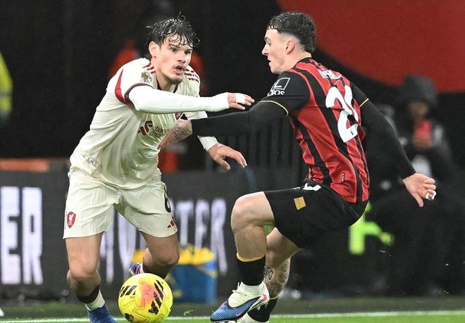 第32分鐘,加克波在左側(cè)帶球內(nèi)切低射,被擋了出去。凱爾凱茲再射一腳,踢得有點正。門將把球沒收。第33分鐘,伯恩茅斯再次進(jìn)球。希爾送出手術(shù)刀般的直塞球,希門尼斯前插,面對門將,起腳低射,皮球從門將襠下穿過去鉆入球門。第45分鐘,利物浦扳回一球。索博斯洛伊開出角球,范戴克在前點甩頭攻門,球進(jìn)了。半場結(jié)束,利物浦1-2伯恩茅斯。