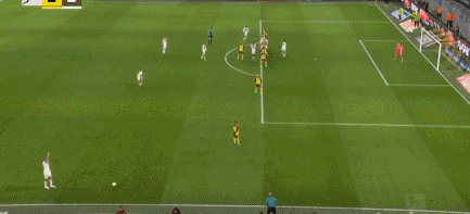 第45+1分鐘,阿德耶米突破傳中,布蘭特破門,多特1-0圣保利