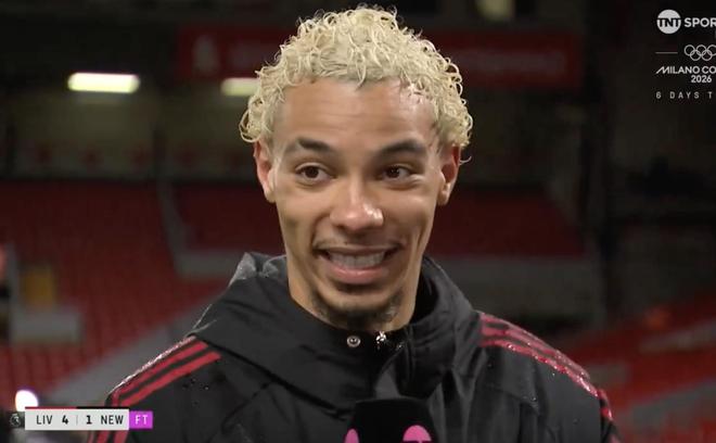 英超第24輪,利物浦主場4-1逆轉(zhuǎn)擊敗紐卡,此役上演梅開二度的?;倏速惡蠼邮芰薚NT體育的采訪。