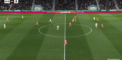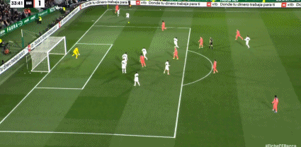 第29分鐘,阿爾瓦羅-羅德里格斯反越位單刀低射破門,埃爾切1-1!