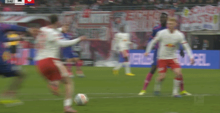 第40分鐘,康拉德-哈德頭球破門,萊比錫1-0領(lǐng)先