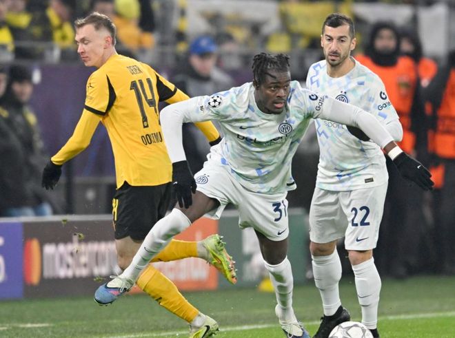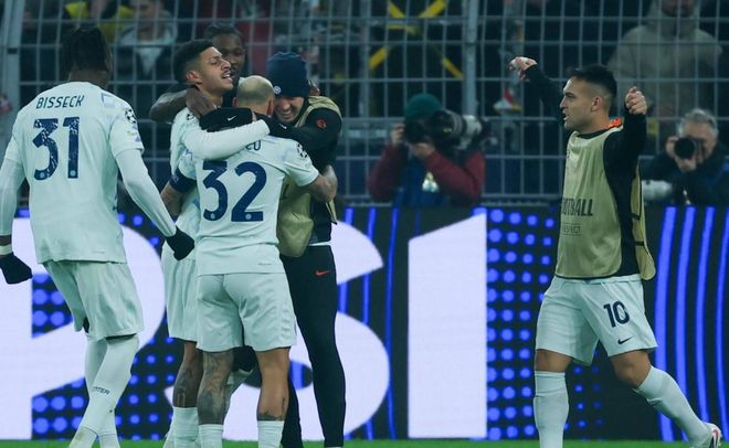 第80分鐘,場(chǎng)上的僵局終于打破了。迪馬爾科任意球直接射門,皮球越過人墻,鉆入球門右上角!這腳世界波非常完美!門將無能為力。之后多特蒙德派上了丘庫埃梅卡和布蘭特。比賽最后時(shí)刻,國(guó)際米蘭再進(jìn)一球。安迪-迪烏夫強(qiáng)行帶球殺入禁區(qū),低射破門,鎖定勝局。最終,國(guó)際米蘭2-0擊敗多特蒙德。國(guó)際米蘭8場(chǎng)小組賽5勝3負(fù)。