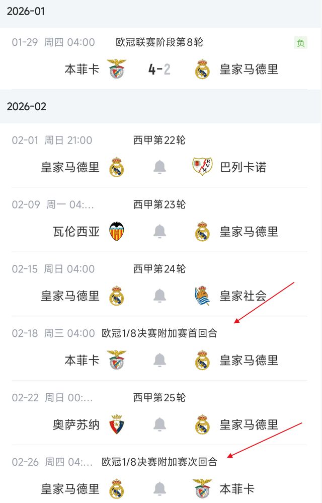 北京時間2026年1月31日消息。歐冠聯(lián)賽改制后,讓附加賽資格賽的賽程,變得殘酷而又有趣:上賽季,首次實行歐冠改制,淘汰賽就出現(xiàn)了皇馬VS曼城的超級對決。結(jié)果瓜迪奧拉的曼城出局?!@一次,主角又是皇馬,他們在相對不錯的局面下,解雇阿隆索,換上阿韋洛亞,軍心不穩(wěn),士氣一般。關(guān)鍵時刻面對實力一般的本菲卡,卻客場2-4告負,這導(dǎo)致的結(jié)果是,皇馬跌至第9,且本菲卡沖到第24名。剛剛好:第9迎戰(zhàn)第24,穆里尼奧將率隊再戰(zhàn)皇馬。