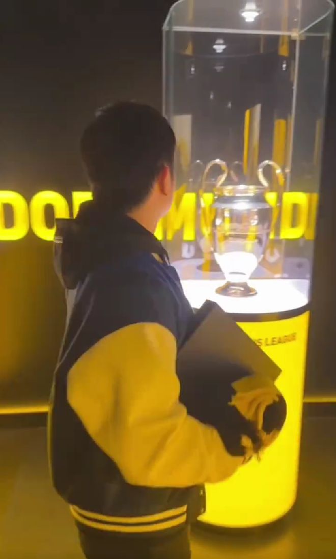 比賽開始之前,波爾帶著樊振東去多特蒙德的獎(jiǎng)杯陳列室參觀,首先映入眼簾的是歐冠獎(jiǎng)杯,1997年多特蒙德。在1997年歐冠決賽,多特蒙德在慕尼黑奧林匹克球場(chǎng)以?3-1戰(zhàn)勝尤文圖斯?,首奪歐冠冠軍,也是德甲歷史上除拜仁外唯一奪得過歐冠的球隊(duì)。