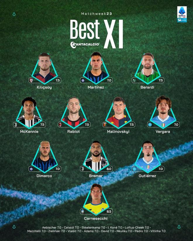 意甲第23輪最佳陣容