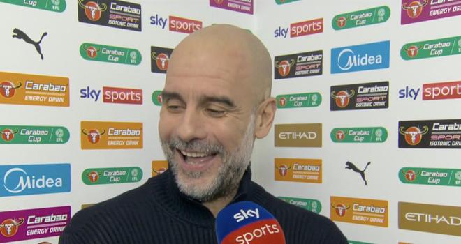 英聯(lián)杯半決賽次回合主場(chǎng)對(duì)陣紐卡前,曼城主帥瓜迪奧拉接受了天空體育的采訪。