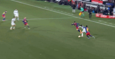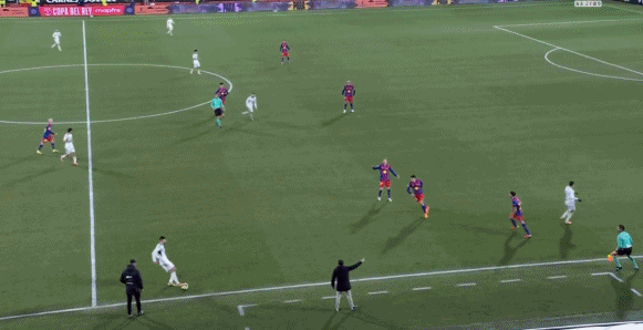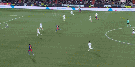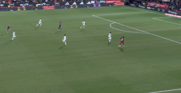 第39分鐘,德容前場斷球后助攻亞馬爾兜射破門,巴薩1-0!
