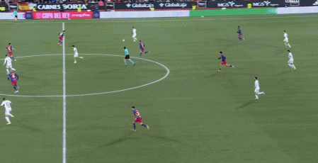 第44分鐘,霍安-加西亞抱著球出底線鼓勵阿勞霍,送對方角球