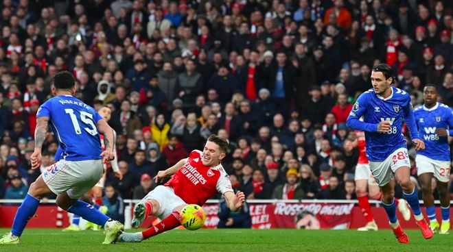 第66分鐘,阿森納前場搶斷后立即發(fā)動進(jìn)攻,約克雷斯禁區(qū)內(nèi)臥射,幫助阿森納擴(kuò)大領(lǐng)先優(yōu)勢。