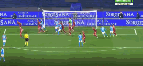 第40分鐘,扳平比分,斯皮納佐拉遠射,皮球折射入網(wǎng),那不勒斯1-1