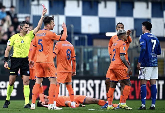 不久之后,莫拉塔又與佛羅倫薩后衛(wèi)盧卡-拉涅利起了沖突。經(jīng)過與裁判團(tuán)隊(duì)的溝通后,馬爾凱蒂將這位33歲的球員罰下場。莫拉塔情緒激動,做出瘋狂的手勢,完全失控,憤怒地走下球場,由隊(duì)醫(yī)團(tuán)隊(duì)安撫。