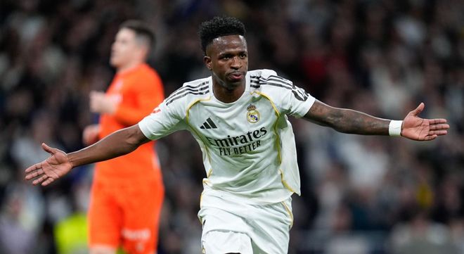 在西甲賽場(chǎng),皇馬則在主場(chǎng)4-1大勝皇家社會(huì)。這場(chǎng)奇葩的比賽出現(xiàn)了3粒點(diǎn)球。貢薩洛-加西亞在第5分鐘就幫助皇馬取得進(jìn)球。之后奧亞薩瓦爾依靠點(diǎn)球機(jī)會(huì)扳平比分。維尼修斯很快也通過點(diǎn)球機(jī)會(huì)進(jìn)球,讓皇馬再次領(lǐng)先。巴爾韋德遠(yuǎn)射破門擴(kuò)大比分。之后維尼修斯再次造點(diǎn)并親自主罰命中,完成梅開二度,殺死了比賽。贏下這場(chǎng)比賽讓皇馬超越了巴薩登頂?;蜀R總積分是60分,巴薩是58分。不過,皇馬比巴薩多踢1場(chǎng)。