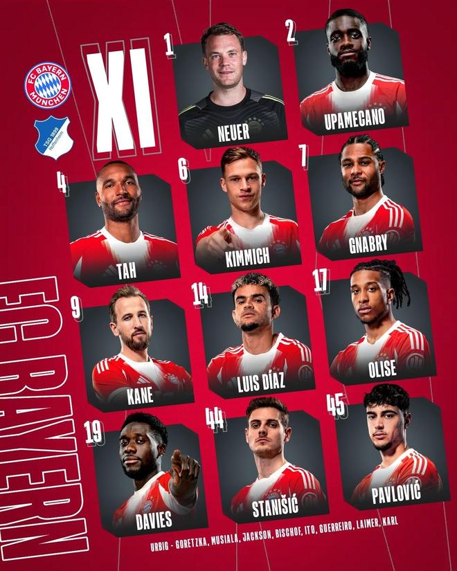 北京時間2月9日0:30,德甲第21輪,拜仁主場對陣霍芬海姆。賽前首發(fā)公布。