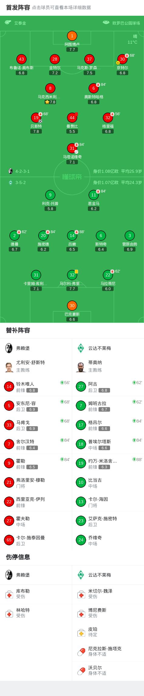 北京時(shí)間2月7日德國(guó)足球頂級(jí)聯(lián)賽 聯(lián)賽 第21輪,弗賴堡主場(chǎng)對(duì)陣云達(dá)不萊梅。弗賴堡貝斯特破門。最終比分弗賴堡 1-0 云達(dá)不萊梅。
