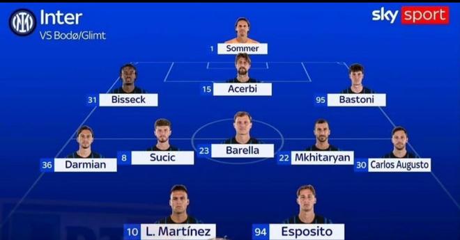 來看一下今天凌晨的比賽:齊沃繼續(xù)主打352,這套小因扎吉時代創(chuàng)辦的戰(zhàn)術體系很成熟了。門將是索默,三中衛(wèi):巴斯托尼、阿切爾比、阿坎吉。中場:奧古斯托和達米安打兩個邊前衛(wèi),姆希塔良、巴雷拉和蘇契奇組成三中場。前鋒是勞塔羅和埃斯波西托?!獙Ρ?天前和尤文圖斯一戰(zhàn),有比塞克、恩里克、澤林斯基和小圖拉姆這4個位置的調整。