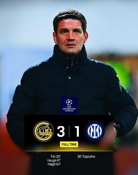 而且從本場比賽的進程來看,遠比3比1的比分所顯示的更具說服力。上半場費特首開紀錄,雖然國米小將皮奧埃斯波西托一度扳平,但下半場徹底成為了博德閃耀的表演時間。海于格和卡斯帕-霍格的進球,讓勞塔羅受傷下場后的怒吼顯得如此蒼白。