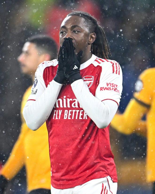 比賽進(jìn)入最后30分鐘,天氣愈發(fā)惡劣,雨雪交加,場面開始混亂。狼隊(duì)頻繁起球制造混戰(zhàn),阿森納的豪華防線,廷貝爾、薩利巴、加布里埃爾在高空球和二點(diǎn)爭搶上出現(xiàn)波動(dòng)。