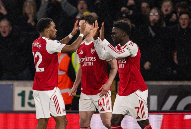 這場比賽阿森納的開局非常完美,薩卡在第5分鐘就攻破了狼隊的大門。之后馬丁內(nèi)利屢失良機,馬杜埃凱也是浪費了好機會。直到下半場第56分鐘,阿森納再次進球。因卡皮耶單刀破門擴大比分。本以為比賽會就此失去懸念,沒想到接下來的劇情會如此神奇。布埃諾用一腳世界波縮小差距,也極大地提升了狼隊球員的士氣。補時階段,卡拉菲奧里送上烏龍球,讓狼隊奇跡般完成絕平!最終的比分定格為2-2!