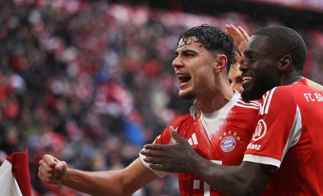 這場比賽剛開始不久,迪亞斯在禁區(qū)內(nèi)被放倒,但裁判沒有任何表示。第16分鐘,拜仁進球了!帕夫洛維奇大力凌空抽射,門將倒地側(cè)撲,雖然撲了一下皮球,但球依然鉆入球門右下角。只過了4分鐘,拜仁再次進球!斯塔尼希奇頭球擺渡,凱恩門前頭球接力,輕松把球送進球門!拜仁兩球領(lǐng)先!第43分鐘,巴霍亞犯規(guī),被出示黃牌。半場結(jié)束,拜仁2-0領(lǐng)先法蘭克福。