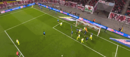 第37分鐘,鮑姆加特納搶點射門,球打偏了
