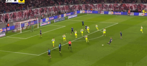 第20分鐘,迪奧曼德晃動送助攻,鮑姆加特納破門,萊比錫1-0多特