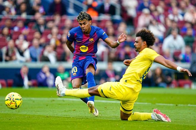 此役主場(chǎng)對(duì)陣比利亞雷亞爾,首發(fā)出戰(zhàn)的亞馬爾在比賽第28分鐘、第37分鐘和第69分鐘各入一球,上演帽子戲法。
