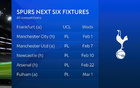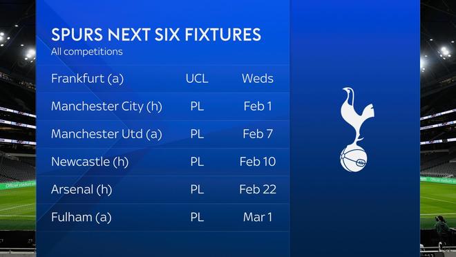 讓球迷們愈發(fā)擔(dān)憂的還有熱刺2月的魔鬼賽程,他們接下來(lái)四輪的對(duì)手實(shí)力,屬于英超所有球隊(duì)中的最強(qiáng)梯隊(duì)。