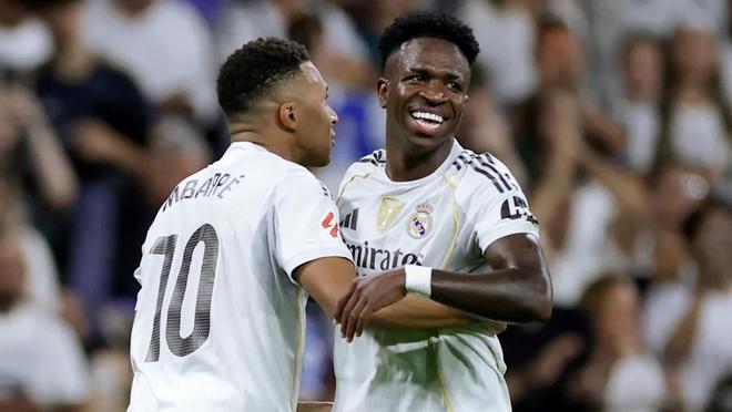 擁有維尼修斯和姆巴佩在同一支球隊(duì),就像打牌時(shí)握著四張A。贏面十足。維尼修斯和基利安是朋友,也都住在馬德里,一旦連線,任何像樣的防線都會(huì)被撕碎。維尼修斯用一次火山般的突進(jìn)制造了首粒進(jìn)球,金靴獎(jiǎng)得主隨后強(qiáng)勢(shì)殺入,撬開了黃色潛水艇的大門。而第二粒進(jìn)球,姆巴佩上演了“胡安-帕洛莫式”的表演——自己制造、自己完成。他贏得了一個(gè)毫無(wú)爭(zhēng)議的點(diǎn)球,并用勺子點(diǎn)球?qū)⑵淞P進(jìn)。更精彩的是,他在主罰前就告訴卜拉欣,這個(gè)進(jìn)球要獻(xiàn)給他。這才是真正的領(lǐng)袖風(fēng)范。