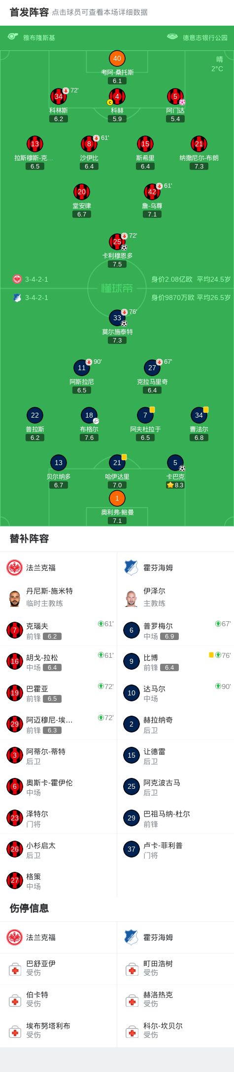 北京時(shí)間1月24日,德國足球頂級(jí)聯(lián)賽第19輪,法蘭克福主場(chǎng)對(duì)陣霍芬海姆。卡利穆恩多率先破門,為法蘭克福取得領(lǐng)先;隨后莫爾施泰特破門,卡巴克再入一球,霍芬海姆連扳兩球反超;阿門達(dá)不慎自擺烏龍,令霍芬海姆擴(kuò)大優(yōu)勢(shì)。最終,法蘭克福1比3不敵霍芬海姆。